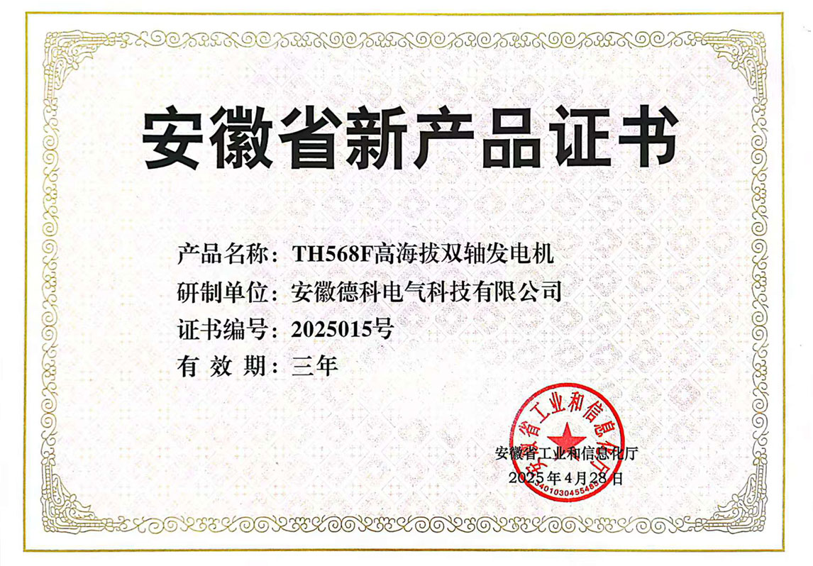 面对高海拔地区空气稀薄、环境恶劣等挑战,TH568F 高海拔双轴发电机采用了博天堂网址专利技术(国家发明专利号:ZL 2021 1 0785503.4),能够保证发电机在高海拔低气压环境下稳定运行,有效克服因海拔因素导致的各类问题。这款发电机广泛适用于高原地区的通信基站供电、矿业开采用电等场景,为高海拔地区的建设与发展注入源源不断的电力动能。此次两款产品成功入选安徽省 2025 年第一批新产品名单,是博天堂网址在发电机领域持续创新、追求卓越的有力见证。未来,博天堂网址发电机将以此为新起点,持续加大研发投入,不断探索新技术、新工艺,推出更多高性能、高品质的发电机产品,为用户提供更优质的电力解决方案,为行业发展贡献更多力量!
